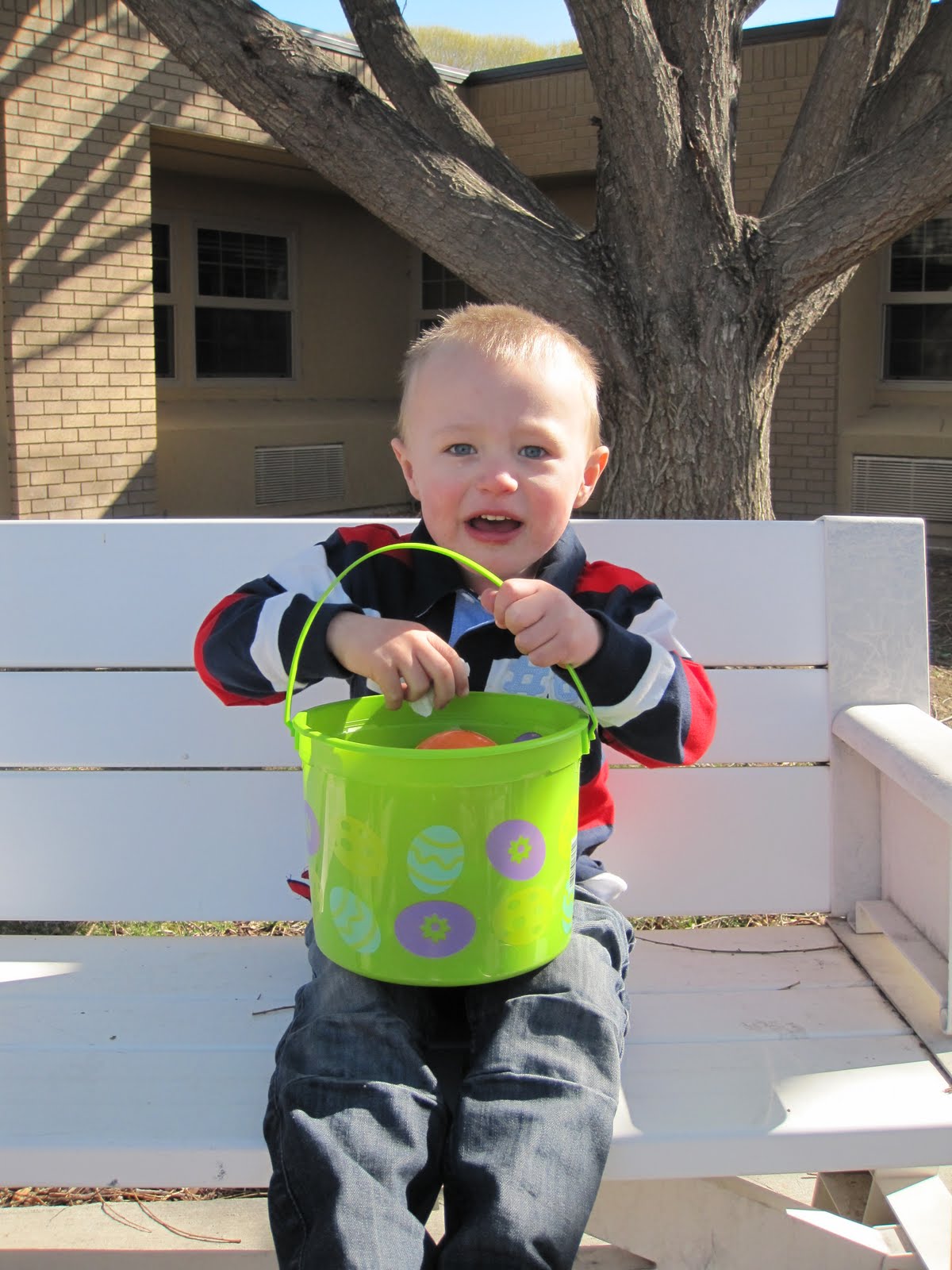 Easter Sunday was so nice and relaxed. We watched conference, made food and hid the same Easter eggs for Logan to find about 10 different times. He just couldn't get enough. After Conference was over we ventured up to Grandma and Grandpa Smith's for dinner and the egg hunt. When kids don't want to pick up eggs anymore it probably means we have too many. It was all a big success except we couldn't find 4 real eggs in the yard. Next month we may be able to find them by smell!
